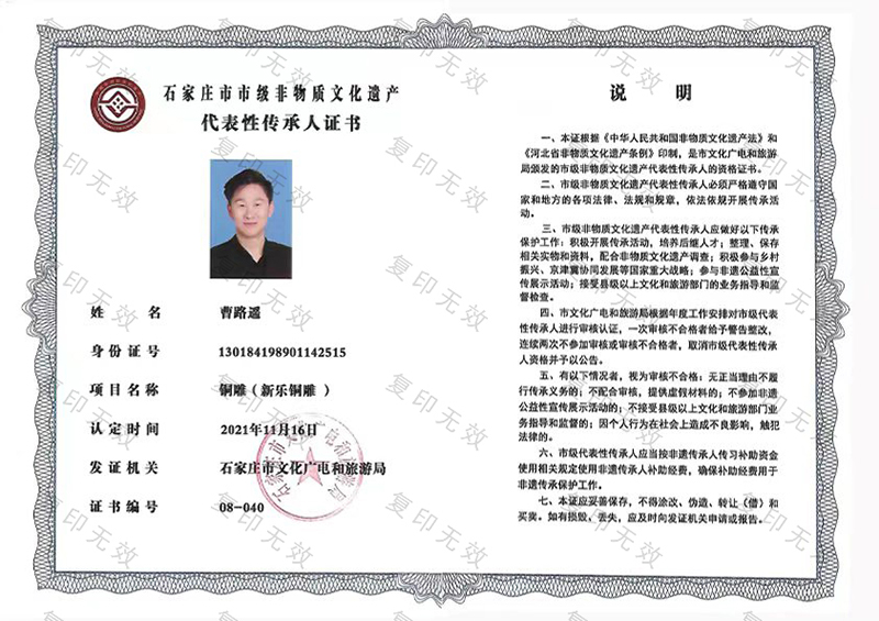 我公司拥有多名荣获城市雕塑证书的艺术家,他们在雕塑塑形、骨架结构、不锈钢表面处理等不同的方面展示自己的专业技能,在他们层层把关的严格要求下,制作另客户满意的艺术品。