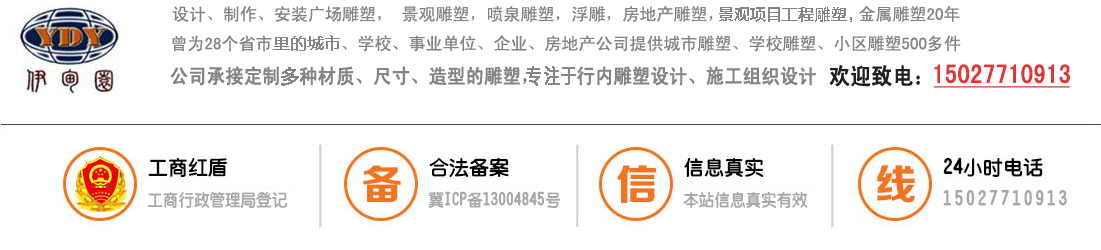 专业的城市雕塑景观设计公司,与河北美院组成长期合作伙伴,并且提供正规设计院出具的雕塑骨架结构图,地基施工图,由经验丰富的技术工人精心雕琢,经全国畅通的物流公司发货,现场安排工人安装。让客户没有任何后顾之