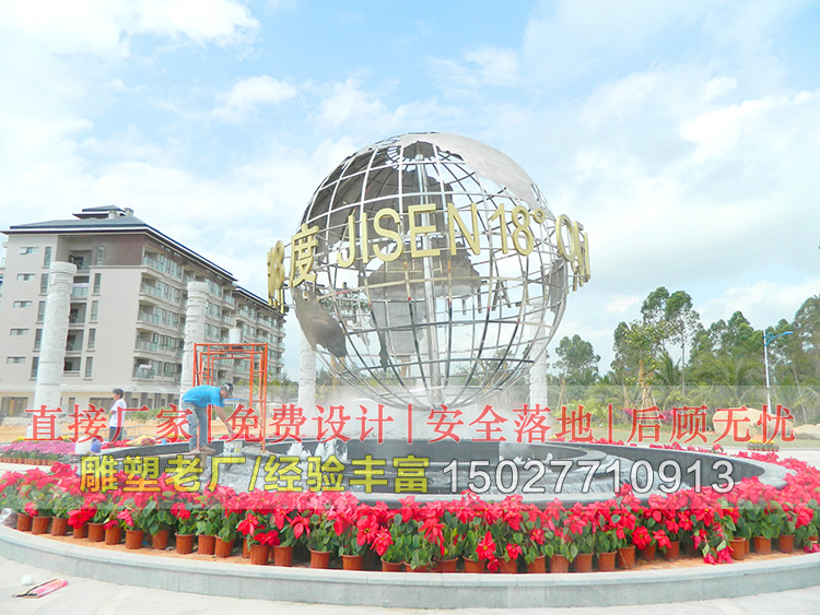 企业里放置不锈钢地球仪雕塑体现了一个企业与时俱进与开拓创新的精神,象征了一个城市朝气 旺盛的生命力。