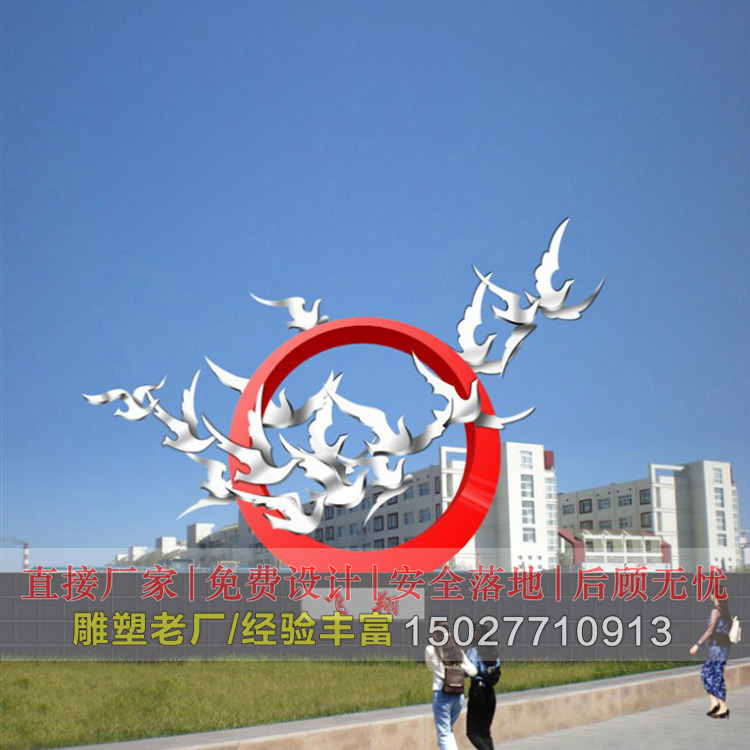 不锈钢雕塑制作流程:设计图纸→骨架放大→板材锻造→整形修复→焊接成型→环氧底漆→氟碳面漆→分节运输→工地安装→拼接成型。