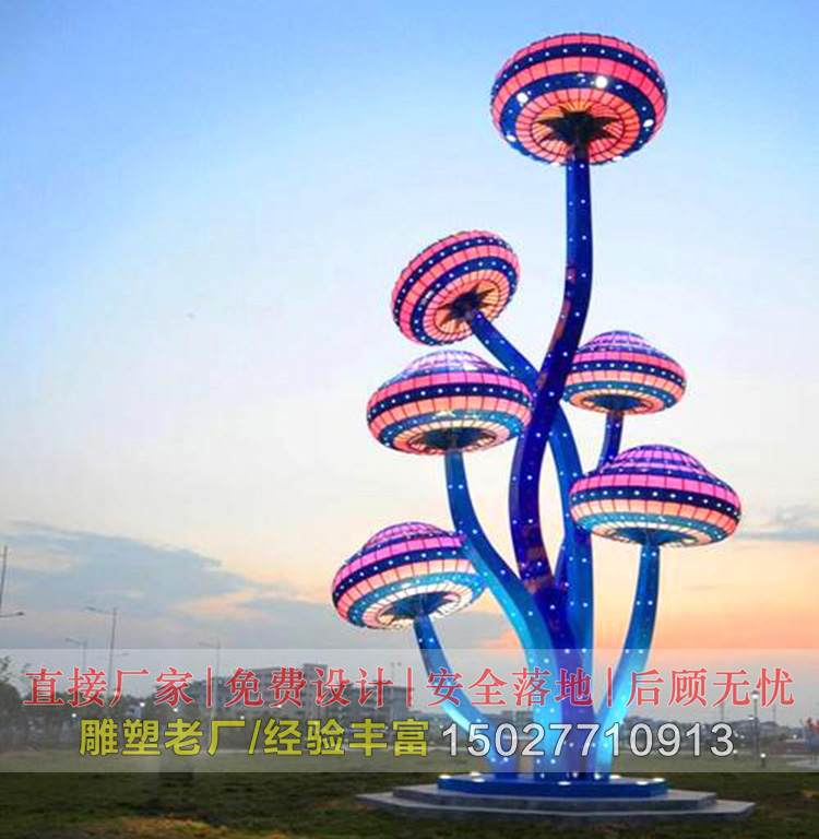 蘑菇灯光不锈钢树雕塑-081