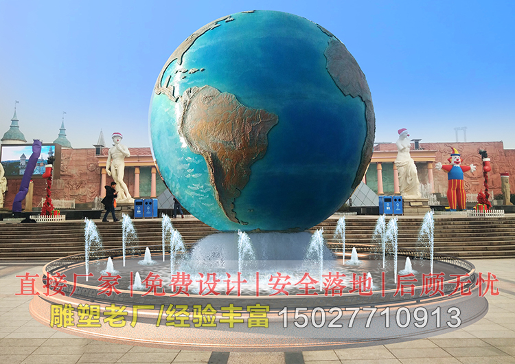 传统的石材地球仪雕塑会受到工艺的限制,不能凸显出标记的大陆板块。但是新兴的不锈钢雕塑,在原来的雕塑的基础之上,可以鲜明的打造出形象的地球仪造型,在配合灯光水景显得更加灵动。