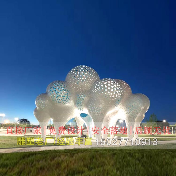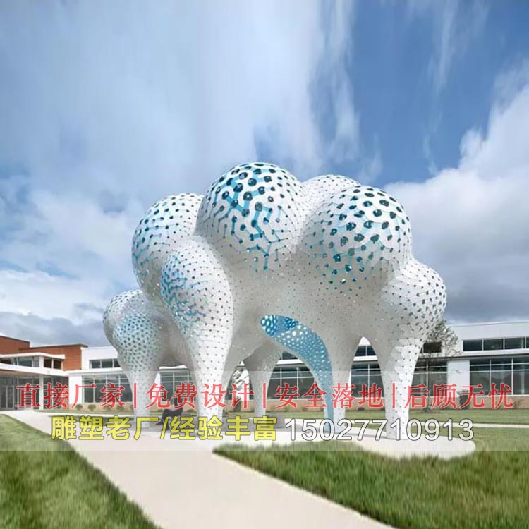 景观不锈钢雕塑制作流程:设计图纸→骨架放大→板材锻造→整形修复→焊接成型→环氧底漆→氟碳面漆→分节运输→工地安装→拼接成型。