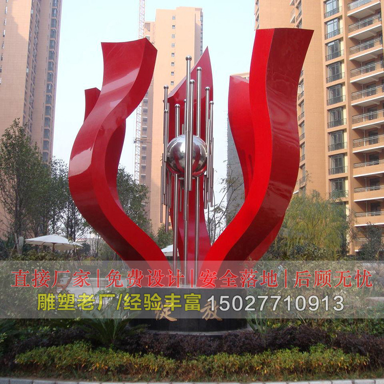 企业不锈钢雕塑目的是在同质事物中突出矛盾性,强化对抗性,显示反差性,突出鲜明的个性,从而使雕塑的形体充满活力动感。调和是指雕塑的形、色、质等诸要素之间统一与协调,无论是形态还是色彩,无论实体还是空间,通过调和手段的运用,使复杂凌乱的事物变得简单有序,调和所包括的内容很多,如就形态面言,包括点、线、面、体等因素的调和;就材质而言,包括软硬、粗细、轻重的调和;就色彩而言,包括邻近色与对比色的调和等等,调和与对比相对立,它往往通过质的调节、量的调节,介入具有转化感过度作用的因素,以化解对应的双方,从而达到和协的目的。节奏和韵律节奏是事物变化过中所表现出的一种不断往复的规律性的节拍;韵律是指事物变化过程中不断往复的规律性节拍的高低起伏、抑扬顿挫变化的乐感或情调。