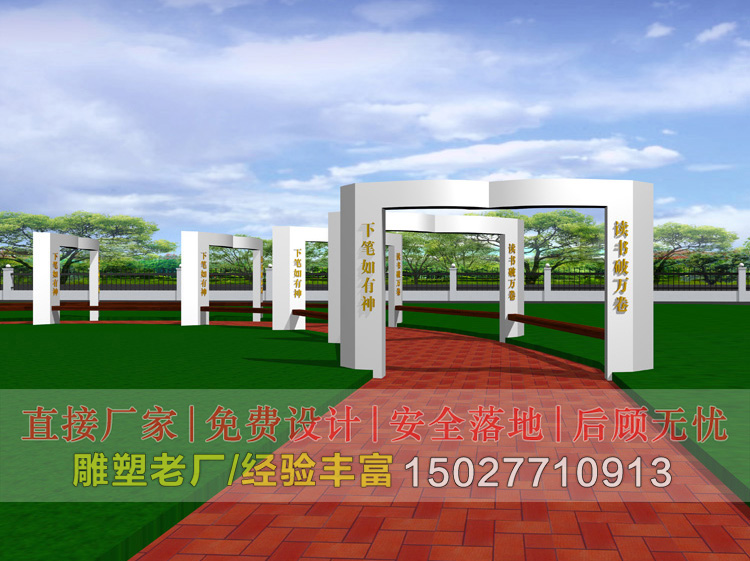 校园雕塑作为一种环境教育力量,对学生的健康成长有着巨大的影响,校园雕塑对学生的影响虽不是立竿见影的,但却是稳定渐进的,要相信,符合校园主题的雕塑必然会结出人才成熟之果。常用于学校文化馆、图书馆、广场、大门口、路口节点、室内等。作为校园景观重要组成部分的雕塑,不仅可以起到美化和装饰环境的作用,还被视为教育促进和审美熏陶的重要工具。它可以是校园文化的载体,也可以成为学校品牌的标志,同时也体现着学校本身的品味和人文精神。校园主题雕塑造型也是多样化的,学校常见的有名人雕像、读书雕像、校园不锈钢雕塑、文化浮雕景墙、景观文化石等,常用的材质有铸铜、石材、玻璃钢等。