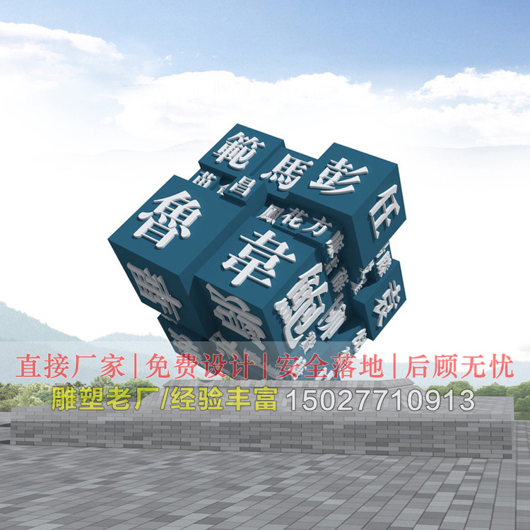 校园雕塑主要是用于校园的装饰和美化。给学子带来感受和精神上的洗礼。它的出现使城市的景观增加,了学子们的精神享受。作为校园的一部分,校园雕塑一般建立在校园的正中心,既可以单独存在,又可与建筑物结合在一起。校园不锈钢文化雕塑是一种氛围、一种精神。校园文化是学校发展的灵魂,是凝聚人心、展示学校形象、提高学校文明程度的重要体现。校园文化对学生的人生观、价值观产生着潜移默化的深远影响,而这种影响往往是任何课程所无法比拟的。健康、向上、丰富的校园文化对学生的品性形成具有渗透性、持久性和选择性,对于提高学生的人文道德素养,拓宽同学们的视野,培养跨世纪人才具有深远意义。