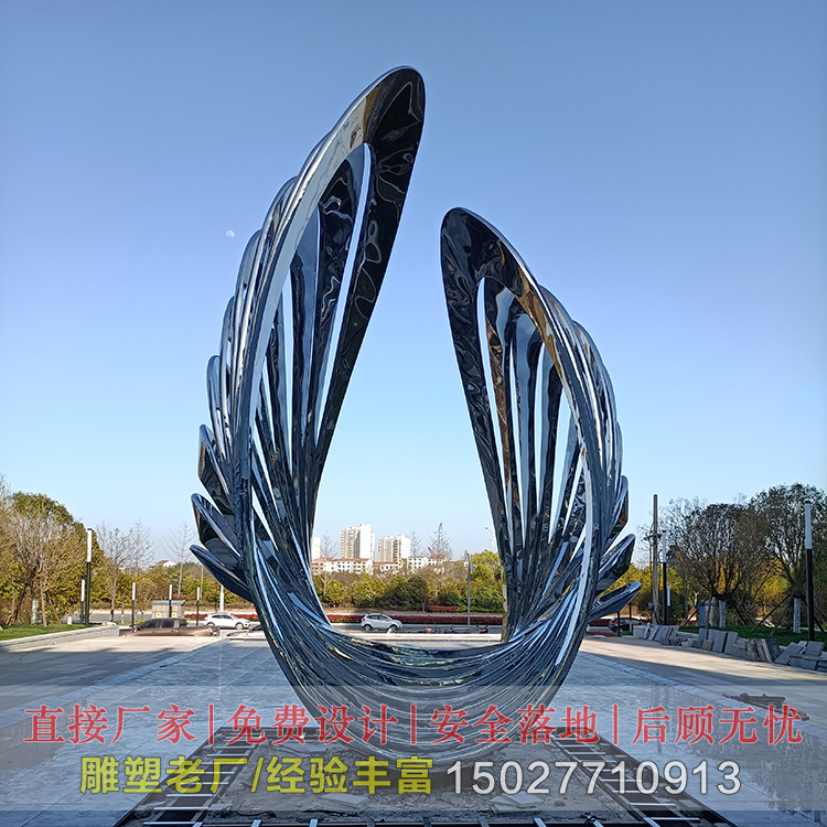 天空之翼不锈钢雕塑造型就像天空的翅膀,抽象的想象利用雕塑的形态完美的体现了出来,表达着人们对自己的向往,以及对未来的期许,本雕塑采用其材料主要是不锈钢。由于不锈钢具有耐碱耐酸等抗腐蚀性的优点。 天空之翼造型就像天空的翅膀,抽象的想象利用雕塑的形态完美的体现了出来,表达着人们对自己的向往,以及对未来的期许,本雕塑采用其材料主要是不锈钢。