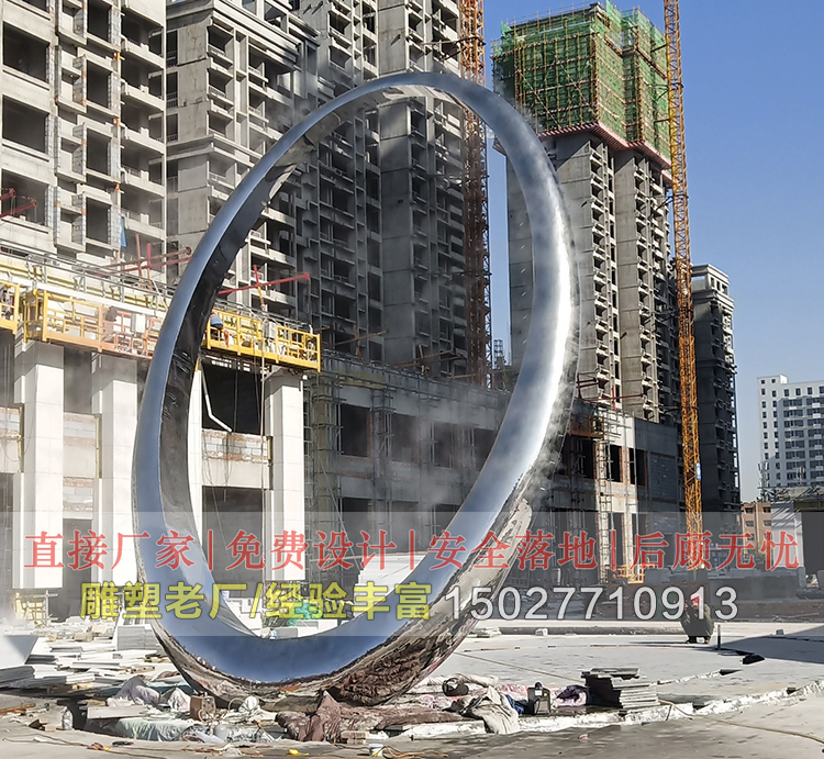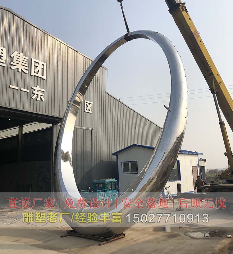 雕塑外部框架采用不锈钢304材质制作,经过锻造抛光,打造成镜面效果。镜面不锈钢雕塑可以清晰的映射周围物体,有延伸空间环境的作用,也不失为一种情趣所在。