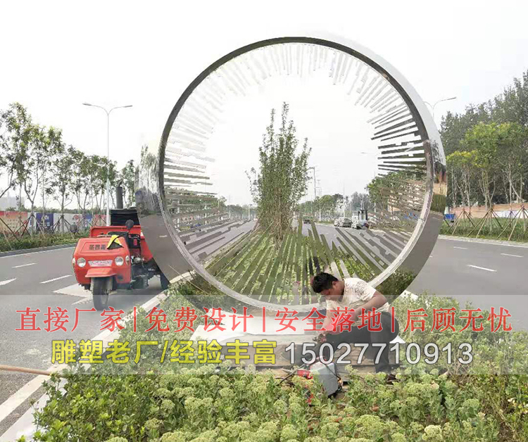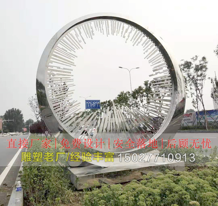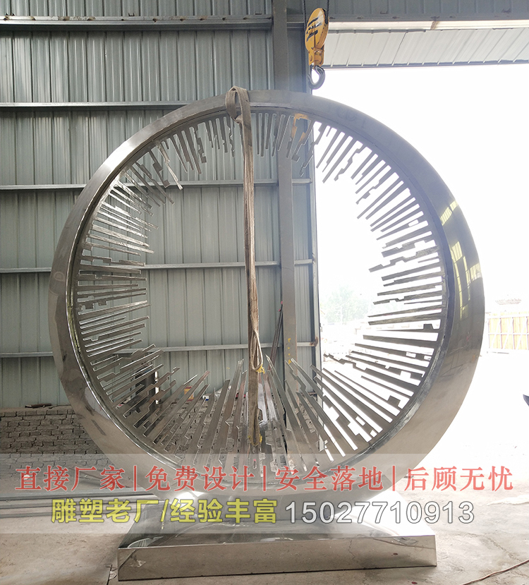 不锈钢雕塑从设计→订制小样→主体制作→物流运输→现场安装→细节处理,共历时3个月。不锈钢雕塑主骨架采用219*6mm镀锌钢管制作,防腐性能好、牢固稳定!所有承重骨架采用双面满焊,整体骨架完成后用防锈漆满涂三遍。雕塑外轮廓为抽象e造型,外部装饰板采用304#钢板,紧贴着骨架外形进行拼装,焊接。